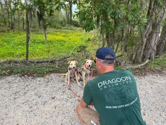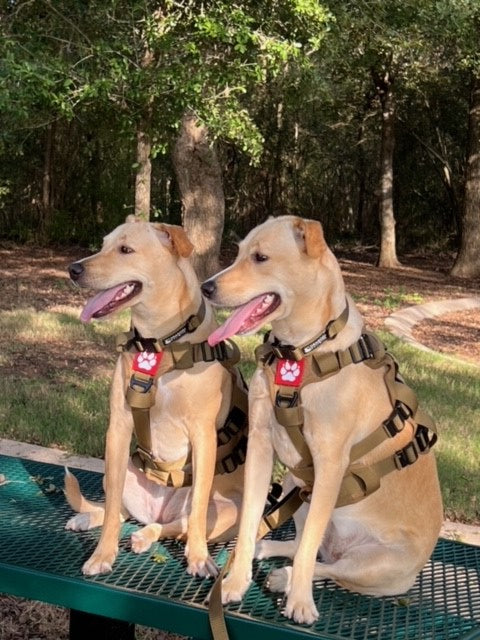 A few years ago, we wanted a good harness for our dogs, but were hesitant to buy what we saw on the market. Its just too hot where we live for a thick, heavy harness, so we started looking for mesh harnesses. Those weren't sturdy enough and didn't have the features we were looking for. My husband started an adventure gear company after 25 years in the Army and I thought maybe we could build exactly what we wanted for our dogs. We started with something much different than what it evolved into, but after months of field testing and problem solving we had EXACTLY what we wanted for our pups.
